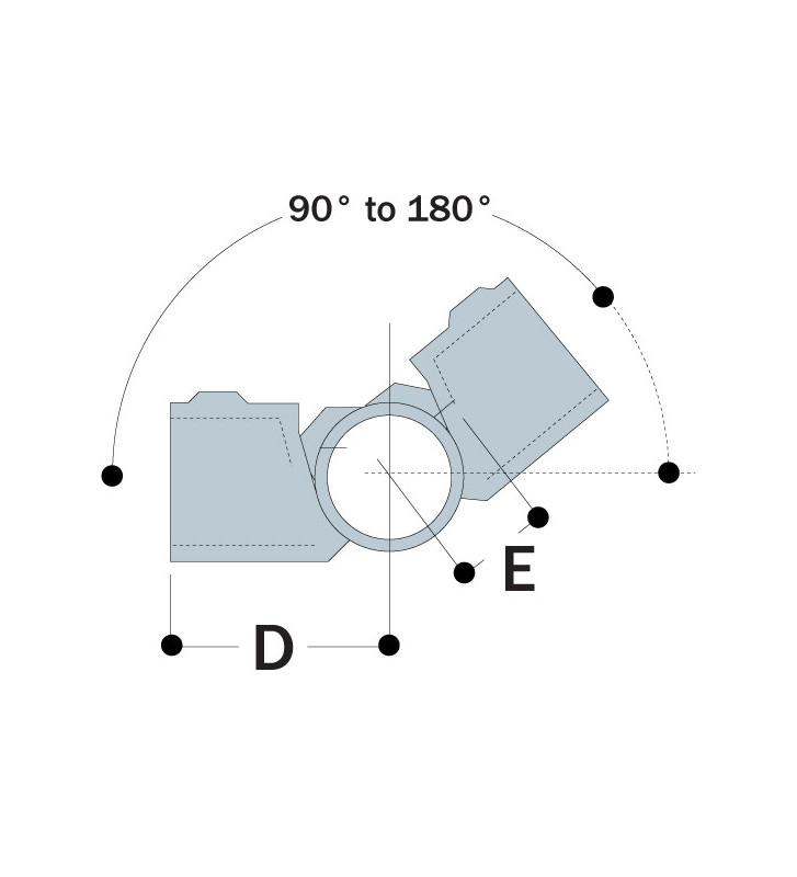 Das Kee Klamp Einstellbare Eck-T-Stück 19-5 ist ideal für variable Winkelverbindungen von 90° bis 180°. Besonders geeignet für Anwendungen, die präzise Winkel erfordern, wie Schienensysteme, Rahmen und industrielle Strukturen. Es unterstützt Rohre mit einem Außendurchmesser von 26,9 mm.