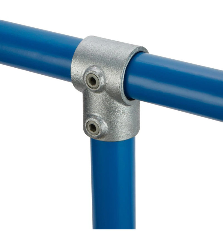 Das kurze T-Stück Kee Klamp 10-76 – 42,4/33,7 mm ist für eine zuverlässige 90°-Winkelverbindung zwischen zwei Rohren konzipiert. Es eignet sich ideal zum Herstellen von Verbindungen zwischen vertikalen Endpfosten und Mittelschienen in geraden und horizontalen Geländersystemen. Dieser Verbinder eignet sich auch ideal zum Befestigen von Sockeln in Regalanwendungen.